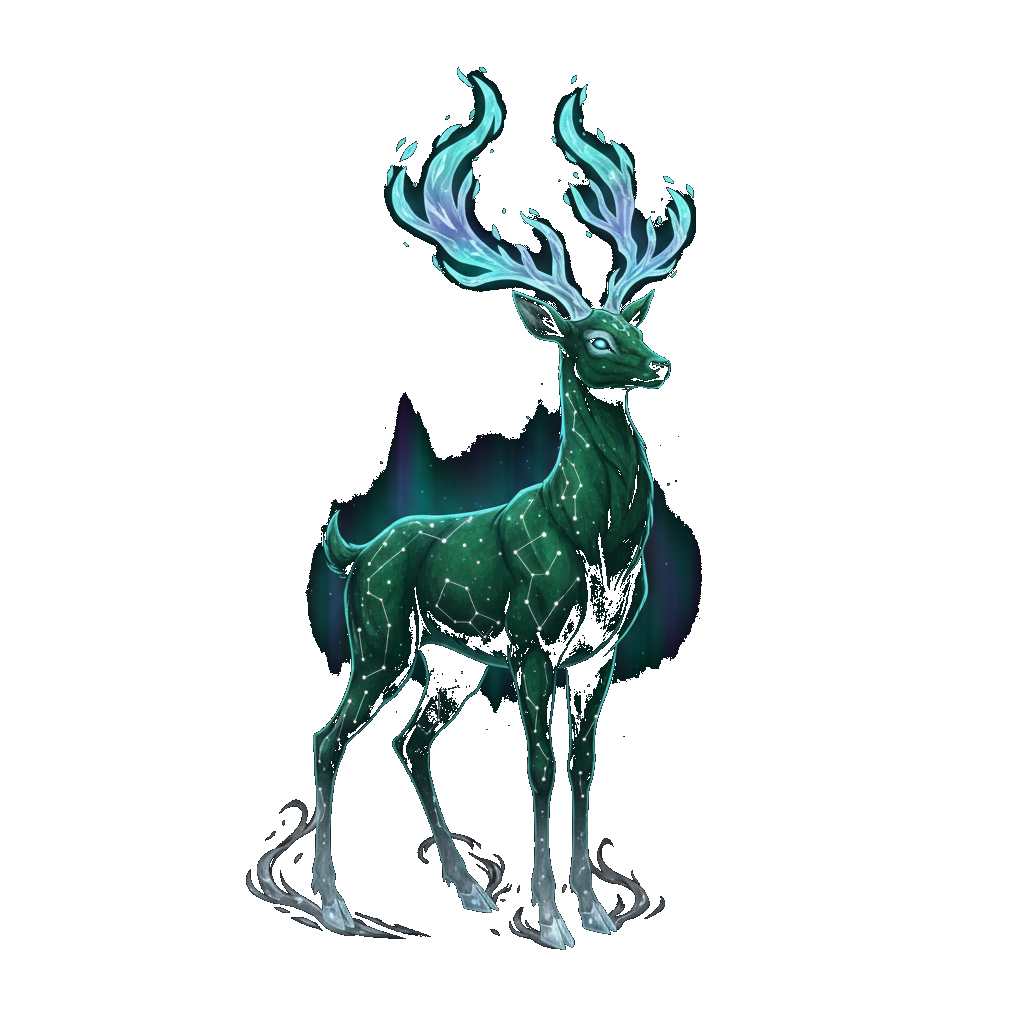 Créature éthérée née du cycle du printemps et de la phase du premier quartier lunaire. Ruviel est une entité rare qui veille sur l'équilibre cosmique, particulièrement lors des moments de transition entre les saisons. Son corps irise des couleurs des aurores printanières et sa présence est un signe de renouveau.